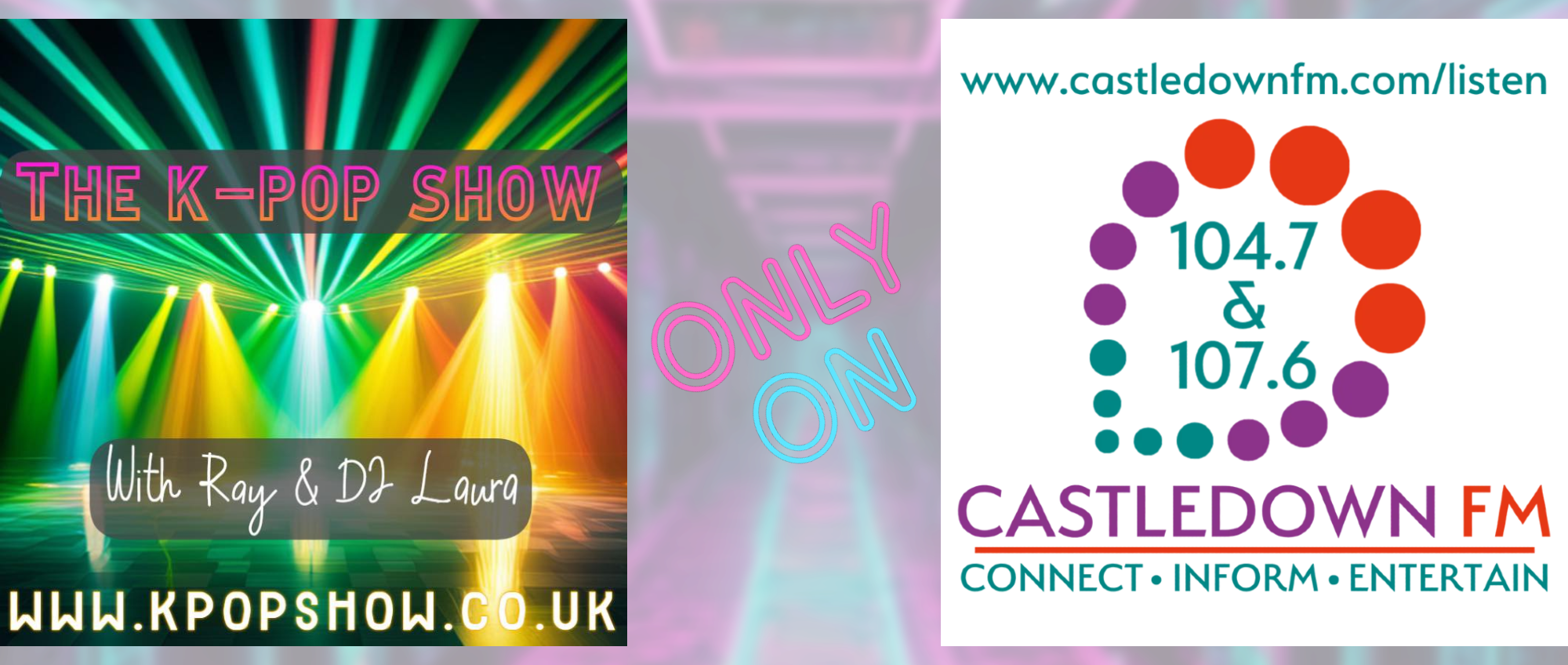 You can catch the K-Pop show every Thursday evening on (castledown FM) from 9pm, with Ray and Laura live for 2 hours of the biggest variety of K-Pop to be played on a UK based radio station.
