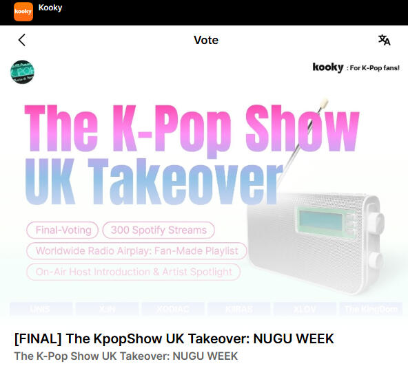 Vote for Your Nugu Idol - Promote your idol on UK-based radio reaching global listeners